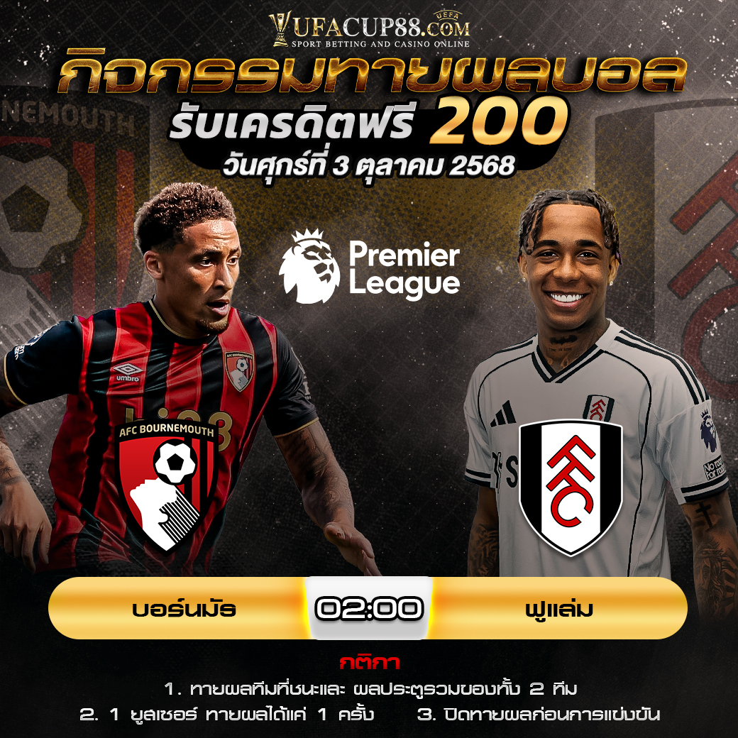 กิจกรรมทายสกอร์รวมและทีมไหนจะชนะคู่ บอร์นมัธ VS ฟูแล่ม ประจำวันที่ 3 ตุลาคม 2568