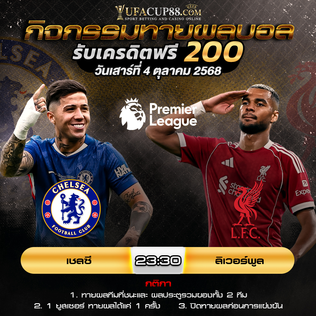 กิจกรรมทายสกอร์รวมและทีมไหนจะชนะคู่ เชลซี VS ลิเวอร์พูล ประจำวันที่ 4 ตุลาคม 2568