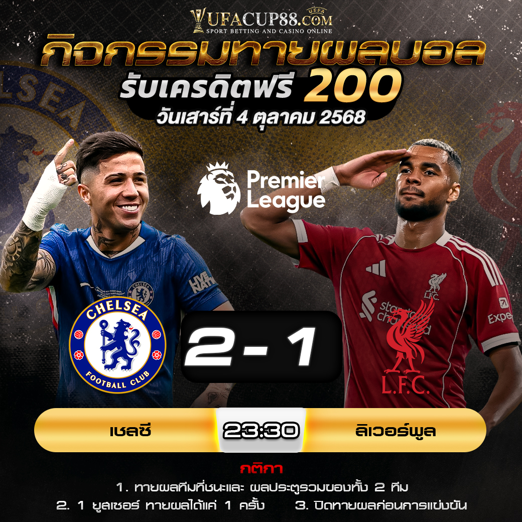 ประกาศกิจกรรมทายสกอร์รวมและทีมไหนจะชนะคู่ เชลซี 2-1 ลิเวอร์พูล ประจำวันที่ 4 ตุลาคม 2568