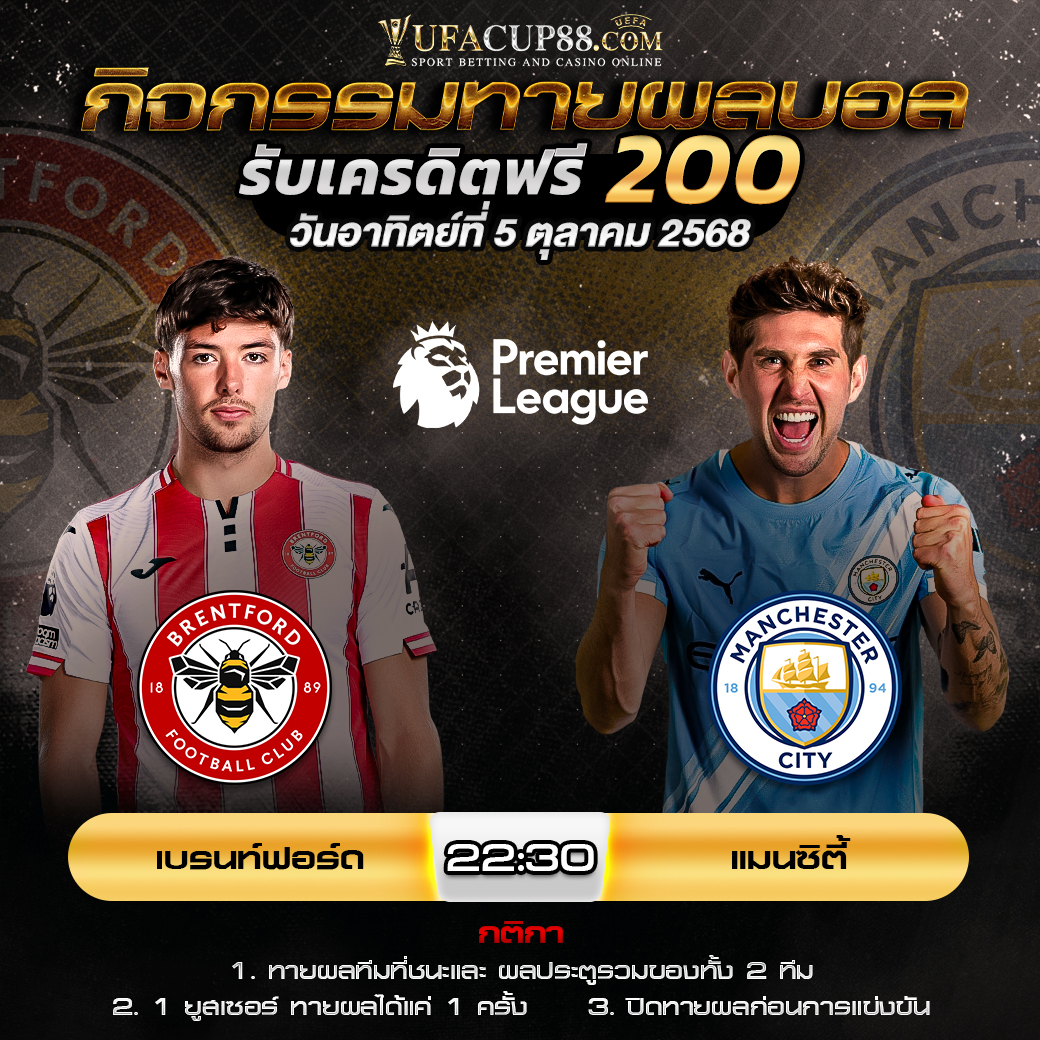 กิจกรรมทายสกอร์รวมและทีมไหนจะชนะคู่ เบรนท์ฟอร์ด VS แมนซิตี้ ประจำวันที่ 5 ตุลาคม 2568