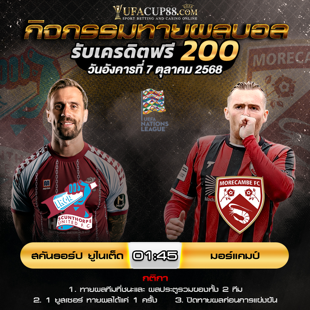 กิจกรรมทายสกอร์รวมและทีมไหนจะชนะคู่ สคันธอร์ป ยูไนเต็ด VS มอร์แคมป์ ประจำวันที่ 7 ตุลาคม 2568