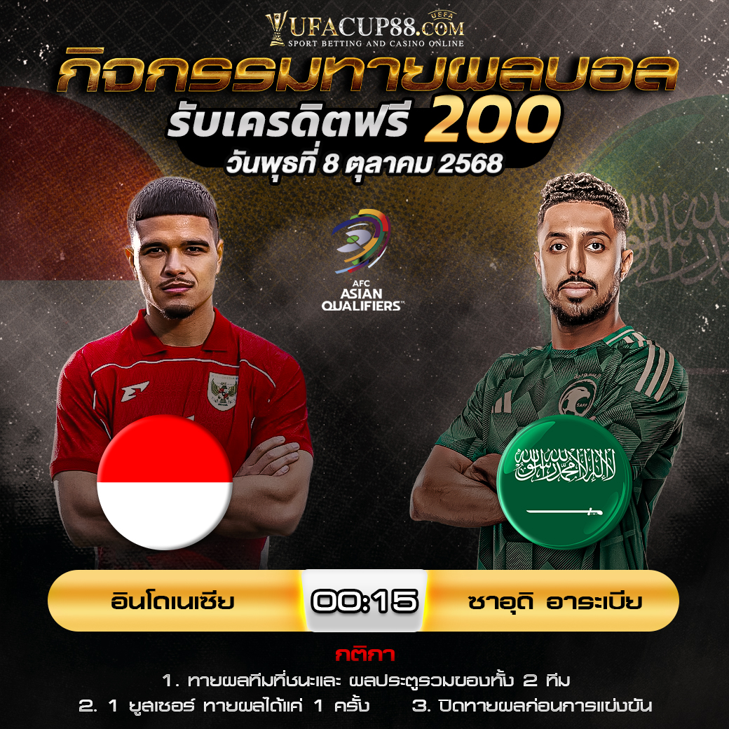 กิจกรรมทายสกอร์รวมและทีมไหนจะชนะคู่ อินโดนีเซีย VS ซาอุดิ อาระเบีย ประจำวันที่ 8 ตุลาคม 2568