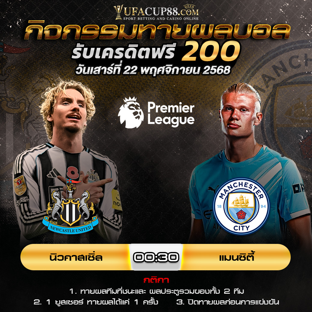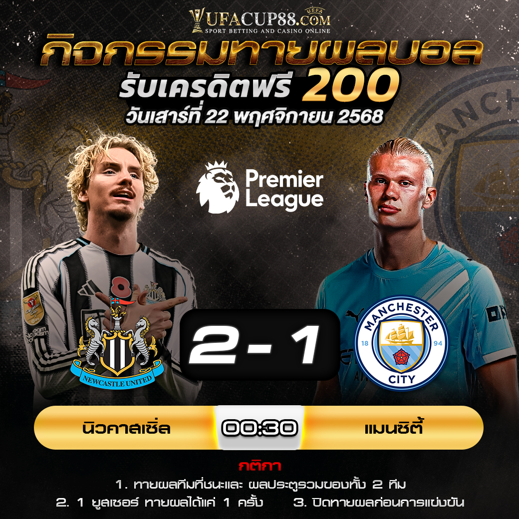 กิจกรรมทายสกอร์รวมและทีมไหนจะชนะคู่ นิวคาสเซิ่ล VS แมนฯ ซิตี้ ประจำวันที่ 22 พฤศจิกายน 2568