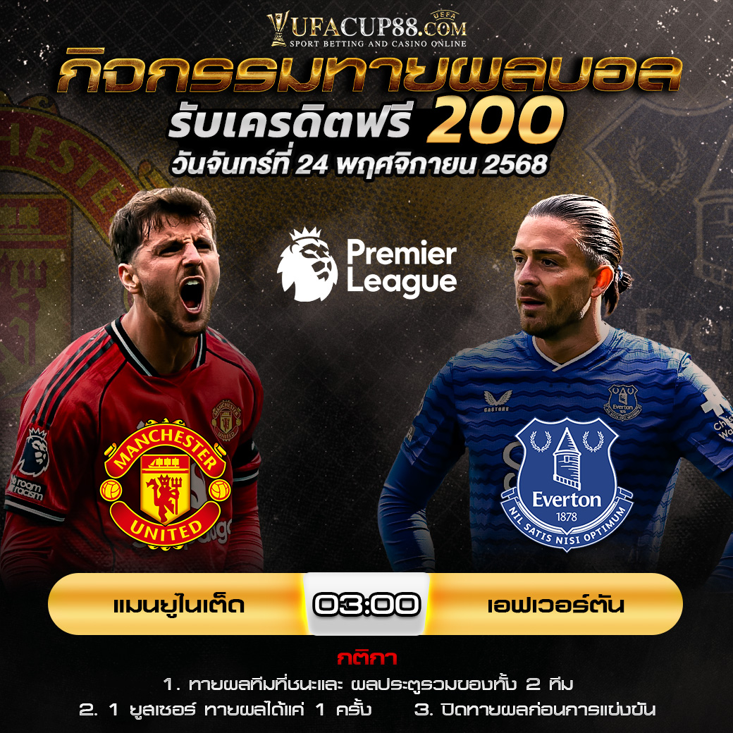 กิจกรรมทายสกอร์รวมและทีมไหนจะชนะคู่ แมนยูไนเต็ด VS เอฟเวอร์ตัน ประจำวันที่ 24 พฤศจิกายน 2568