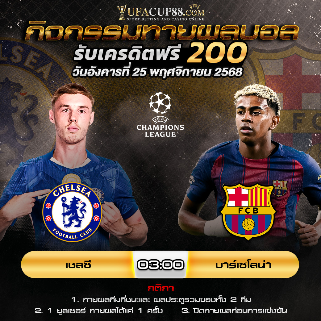 กิจกรรมทายสกอร์รวมและทีมไหนจะชนะคู่ เชลซี VS บาร์เซโลน่า ประจำวันที่ 25 พฤศจิกายน 2568
