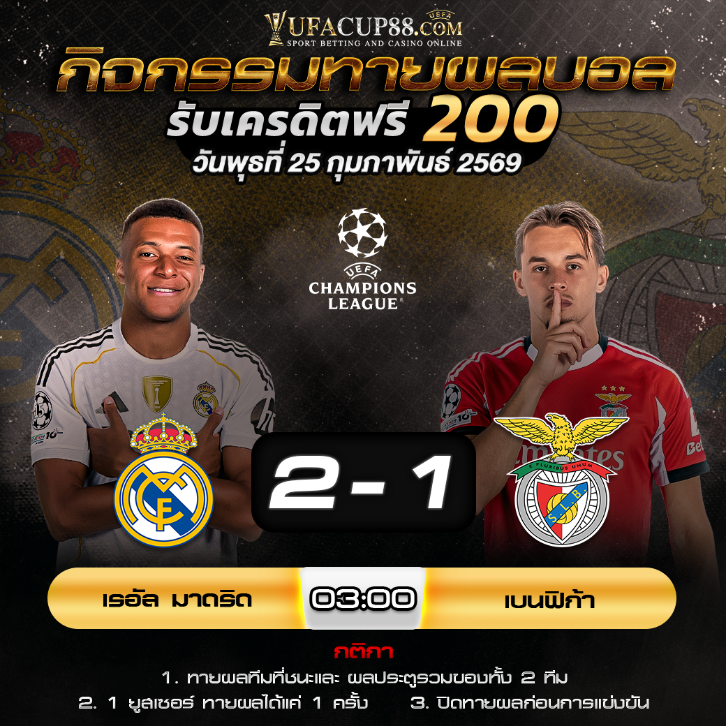 กิจกรรมทายสกอร์รวมและทีมไหนจะชนะคู่ เรอัล มาดริด VS เบนฟิก้า ประจำวันที่ 25 กุมภาพันธ์ 2569