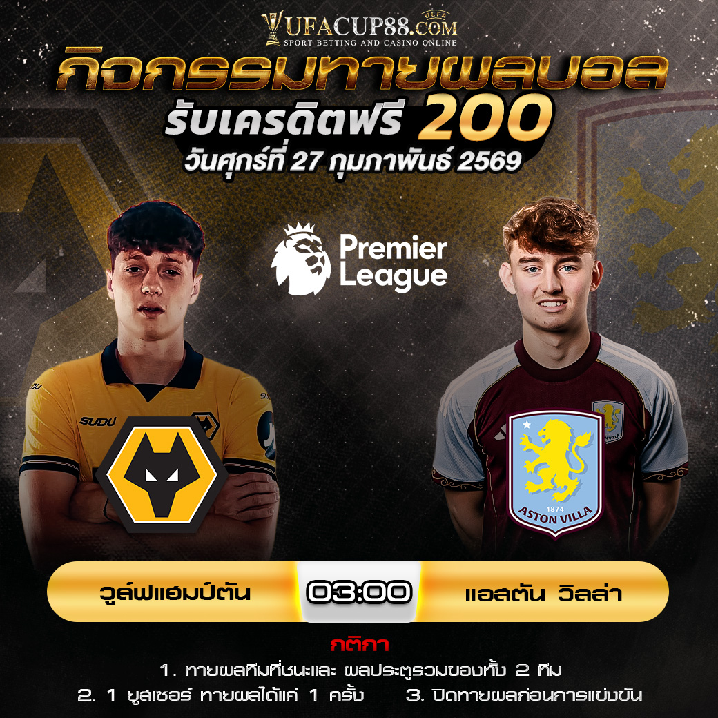 กิจกรรมทายสกอร์รวมและทีมไหนจะชนะคู่ วูล์ฟแฮมป์ตัน VS แอสตัน วิลล่า ประจำวันที่ 27 กุมภาพันธ์ 2569
