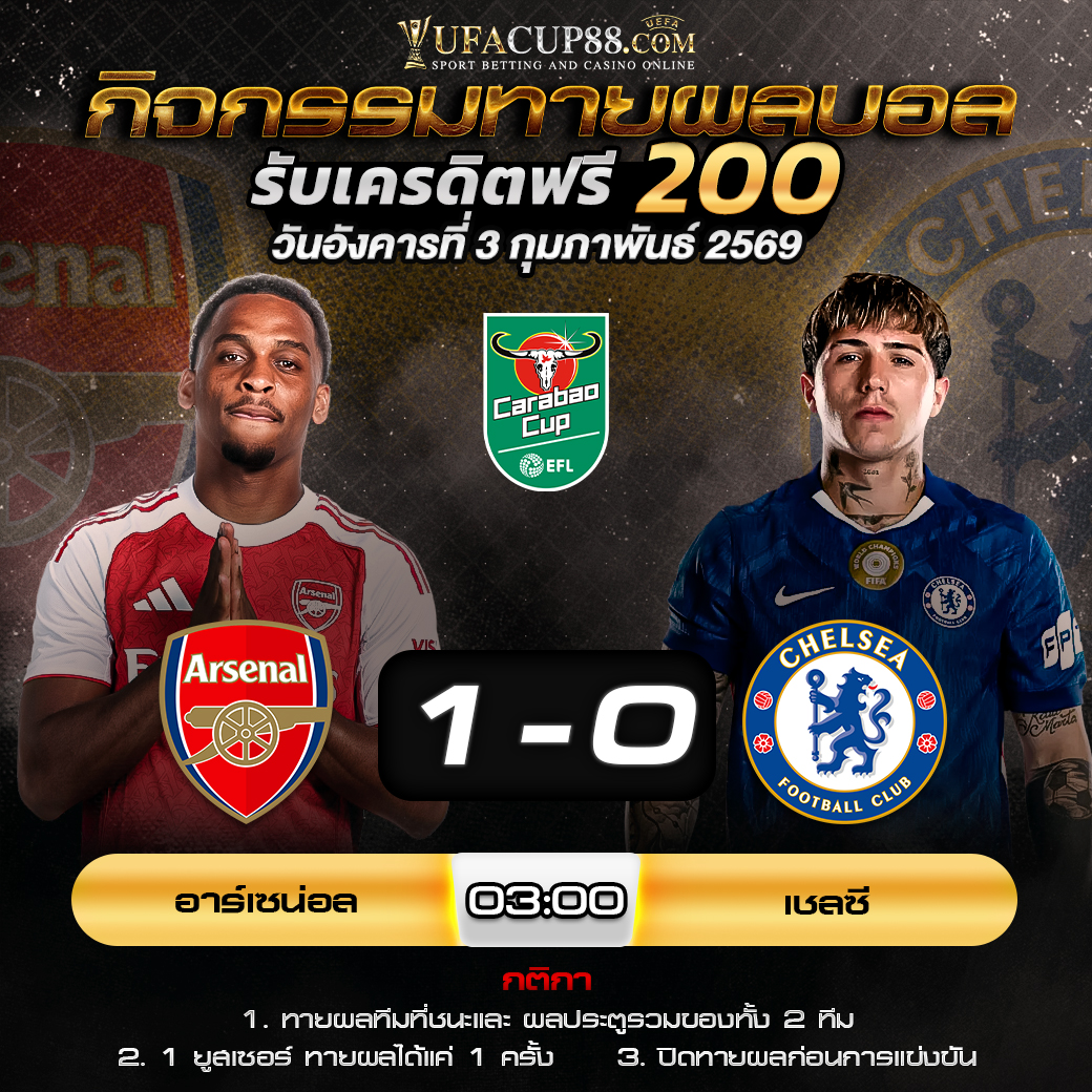ประกาศกิจกรรมทายสกอร์รวมและทีมไหนจะชนะคู่ อาร์เซน่อล 1-0 เชลซี ประจำวันที่ 3 กุมภาพันธ์ 2569