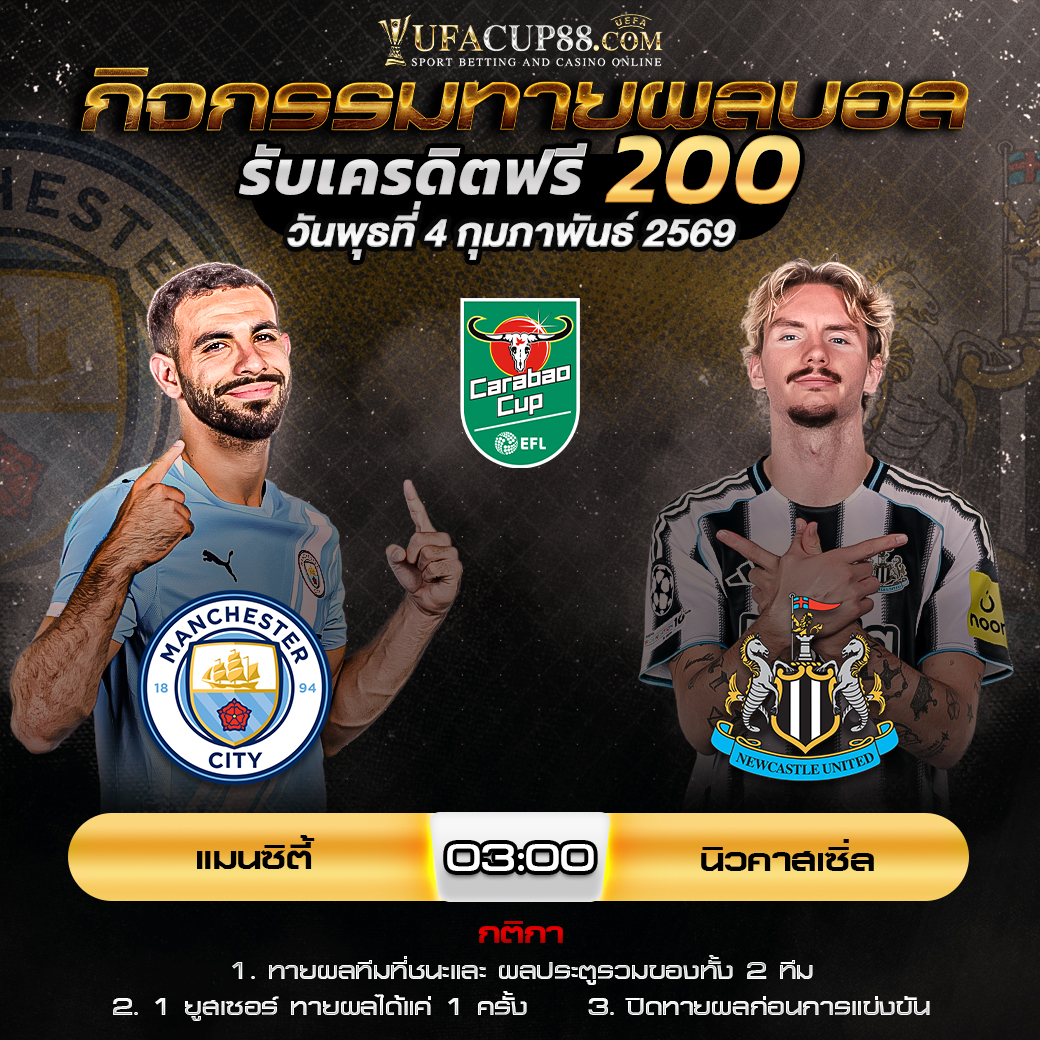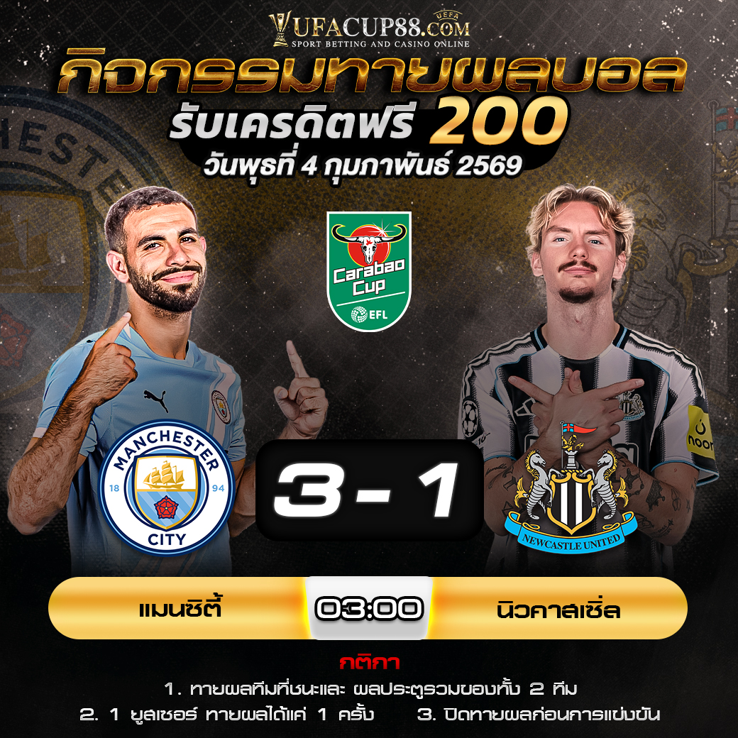 กิจกรรมทายสกอร์รวมและทีมไหนจะชนะคู่ แมนซิตี้ VS นิวคาสเซิ่ล ประจำวันที่ 4 กุมภาพันธ์ 2569