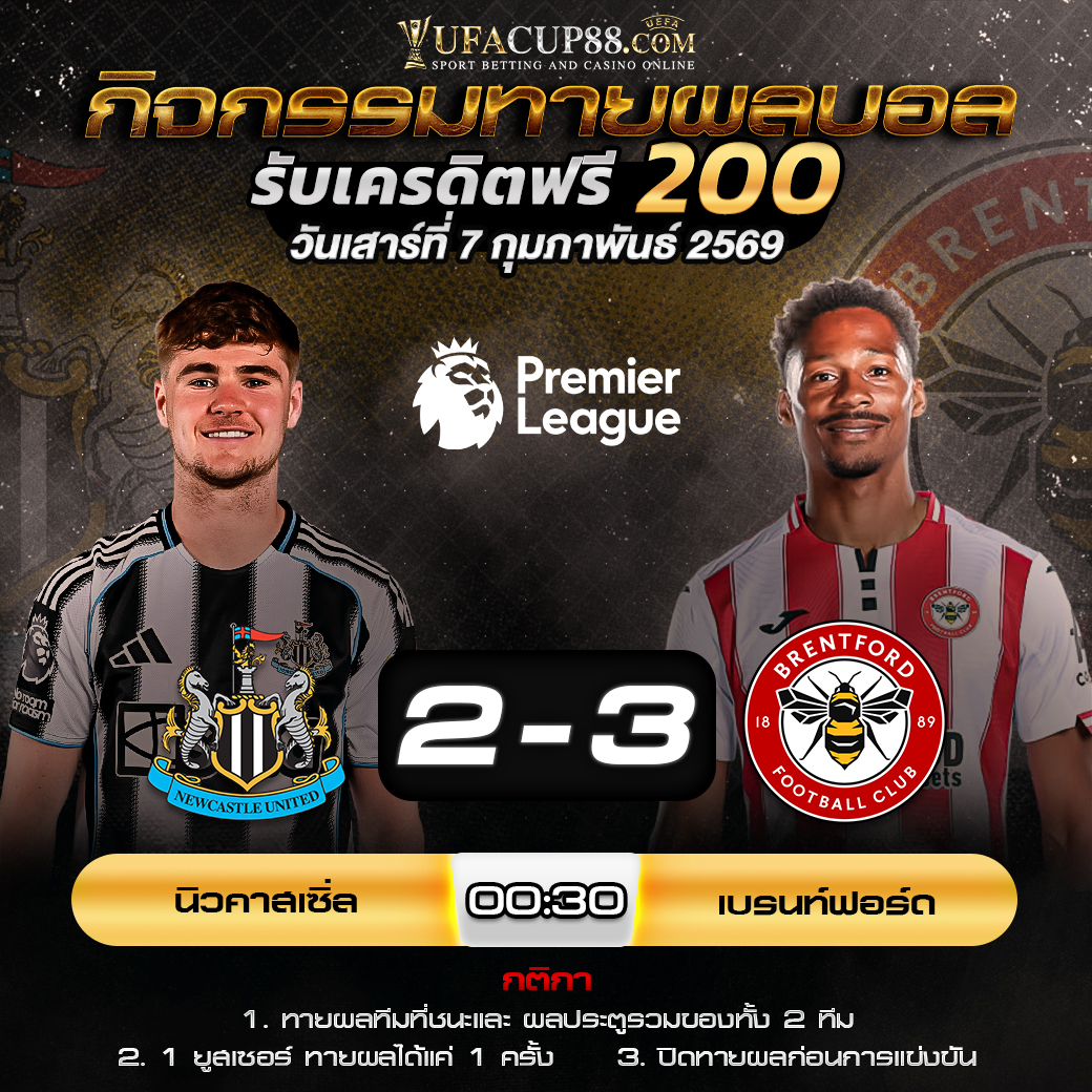 กิจกรรมทายสกอร์รวมและทีมไหนจะชนะคู่ นิวคาสเซิ่ล VS เบรนท์ฟอร์ด ประจำวันที่ 7 กุมภาพันธ์ 2569