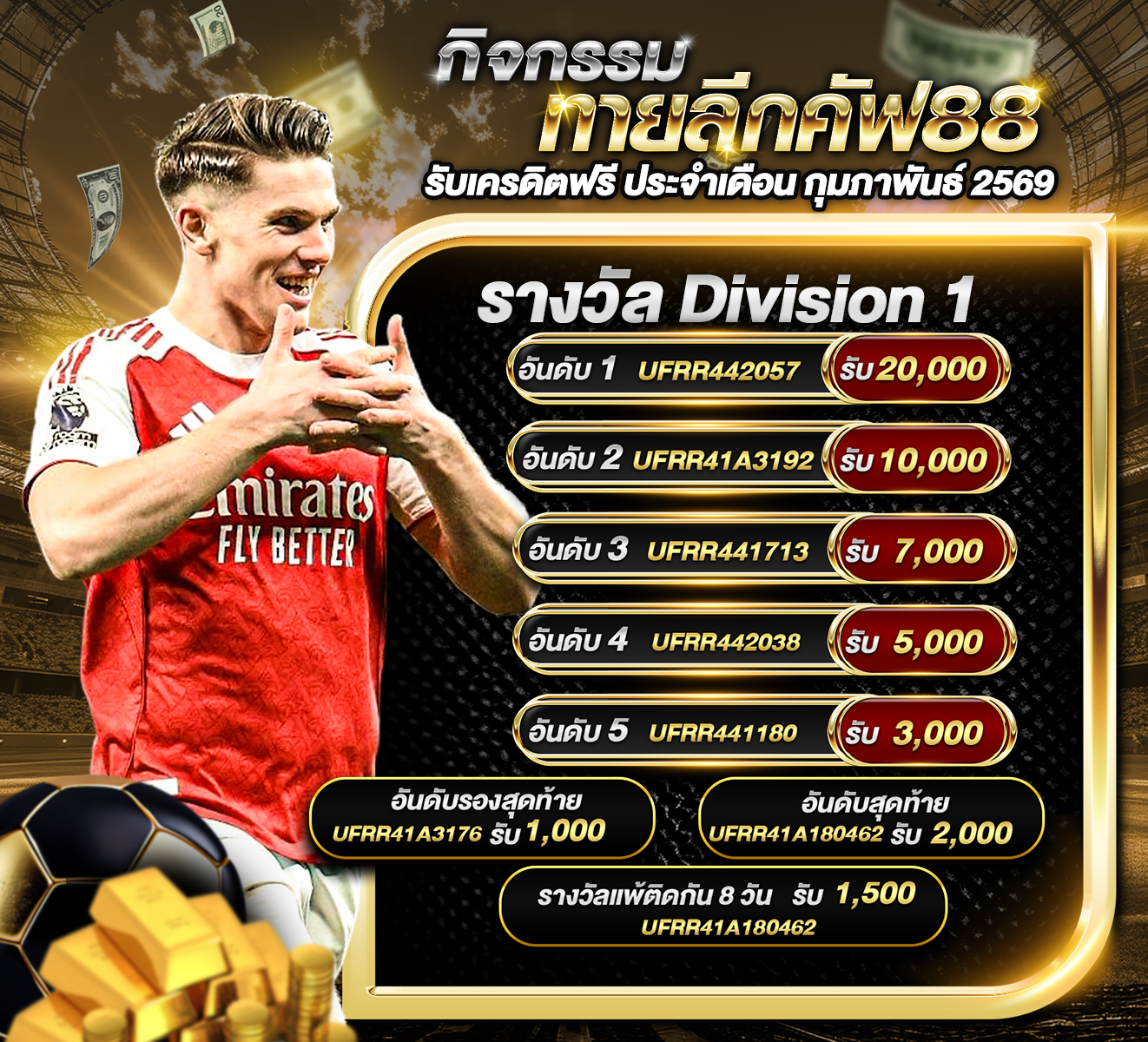 ประกาศกิจกรรม ทายลีกคัฟ88 รับเครดิตฟรี ประจำเดือน กุมภาพันธ์ 2569