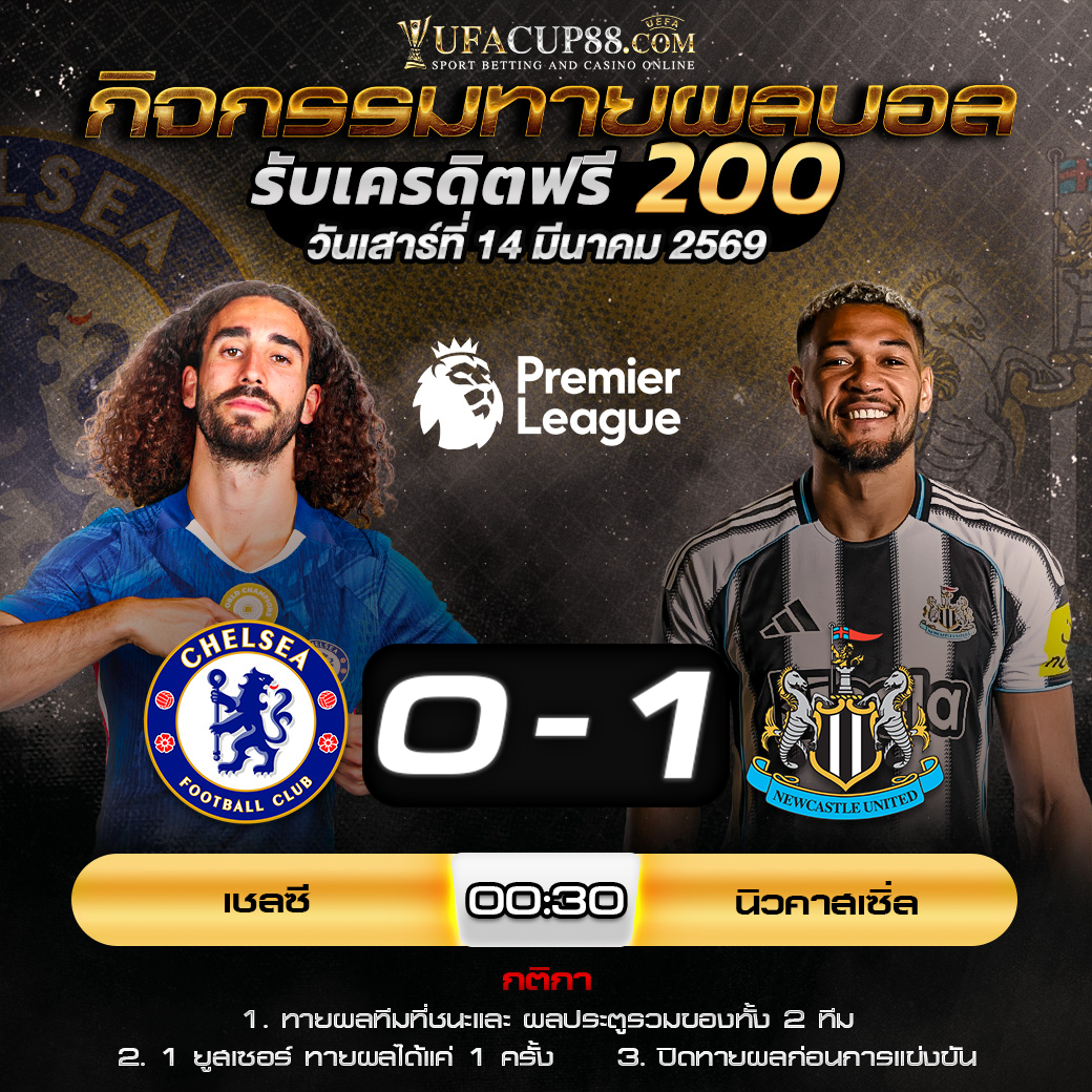 ประกาศกิจกรรมทายสกอร์รวมและทีมไหนจะชนะคู่ เชลซี 0-1 นิวคาสเซิ่ล ประจำวันที่ 14 มีนาคม 2569