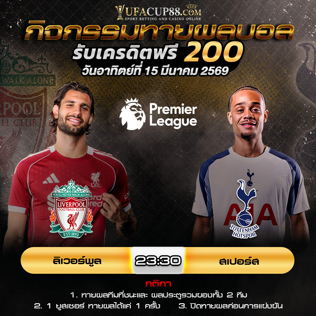 กิจกรรมทายสกอร์รวมและทีมไหนจะชนะคู่ ลิเวอร์พูล VS สเปอร์ส ประจำวันที่ 15 มีนาคม 2569