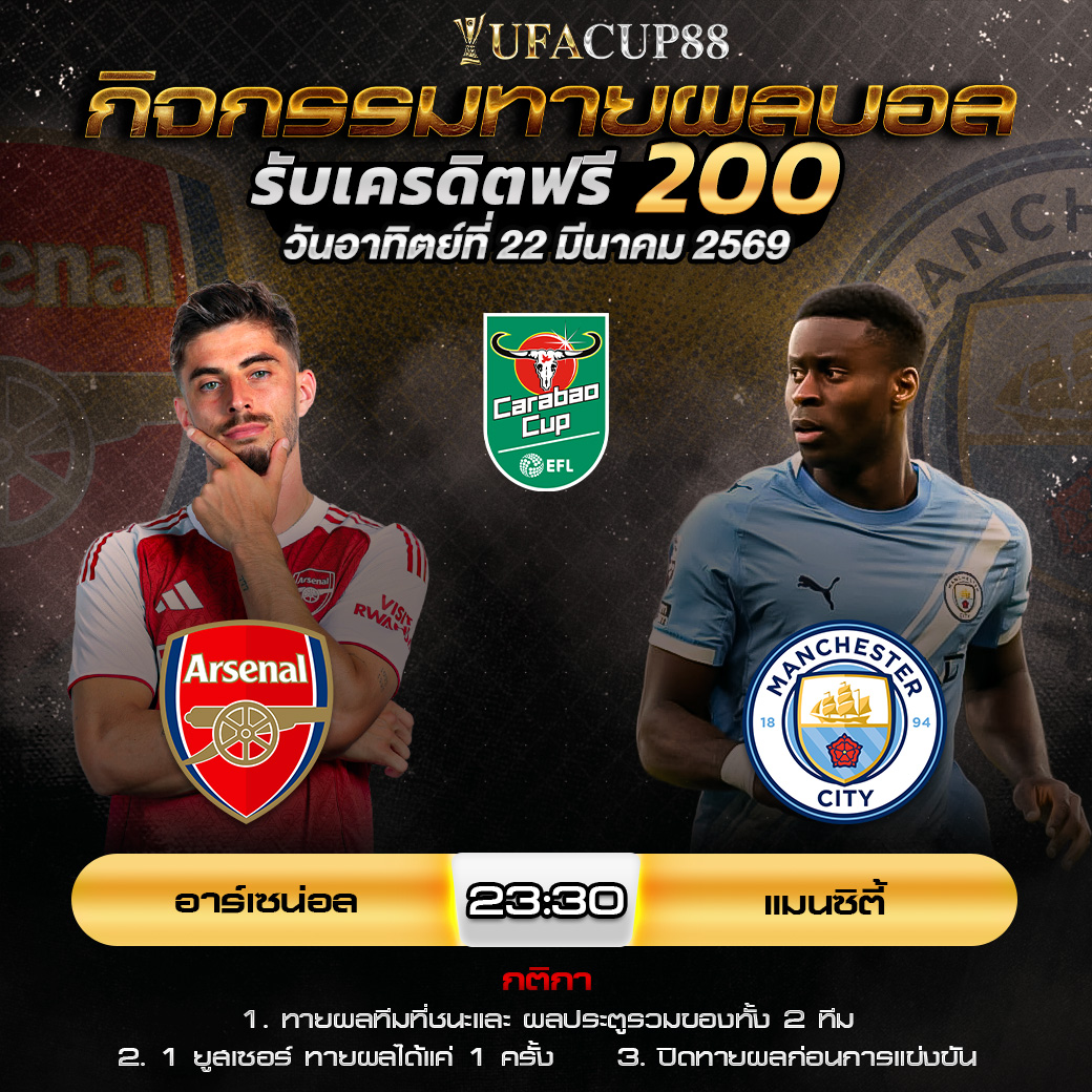 กิจกรรมทายสกอร์รวมและทีมไหนจะชนะคู่ อาร์เซน่อล VS แมนฯ ซิตี้ ประจำวันที่ 22 มีนาคม 2569