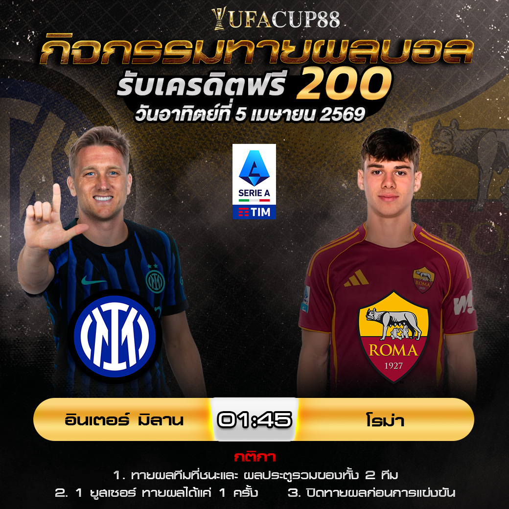 กิจกรรมทายสกอร์รวมและทีมไหนจะชนะคู่ อินเตอร์ มิลาน VS เอเอส โรม่า ประจำวันที่ 5 เมษายน 2569