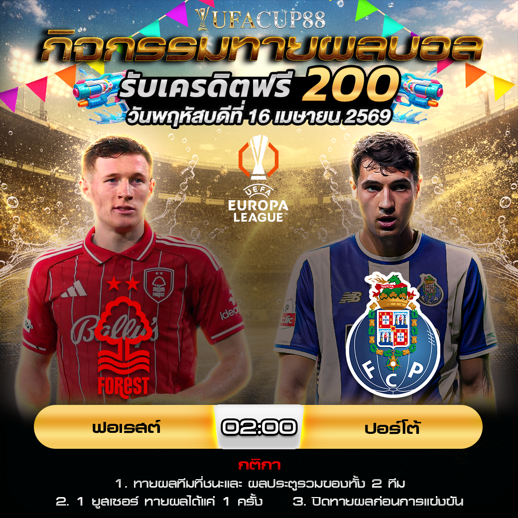 กิจกรรมทายสกอร์รวมและทีมไหนจะชนะคู่ ฟอเรสต์ VS ปอร์โต้ ประจำวันที่ 16 เมษายน 2569