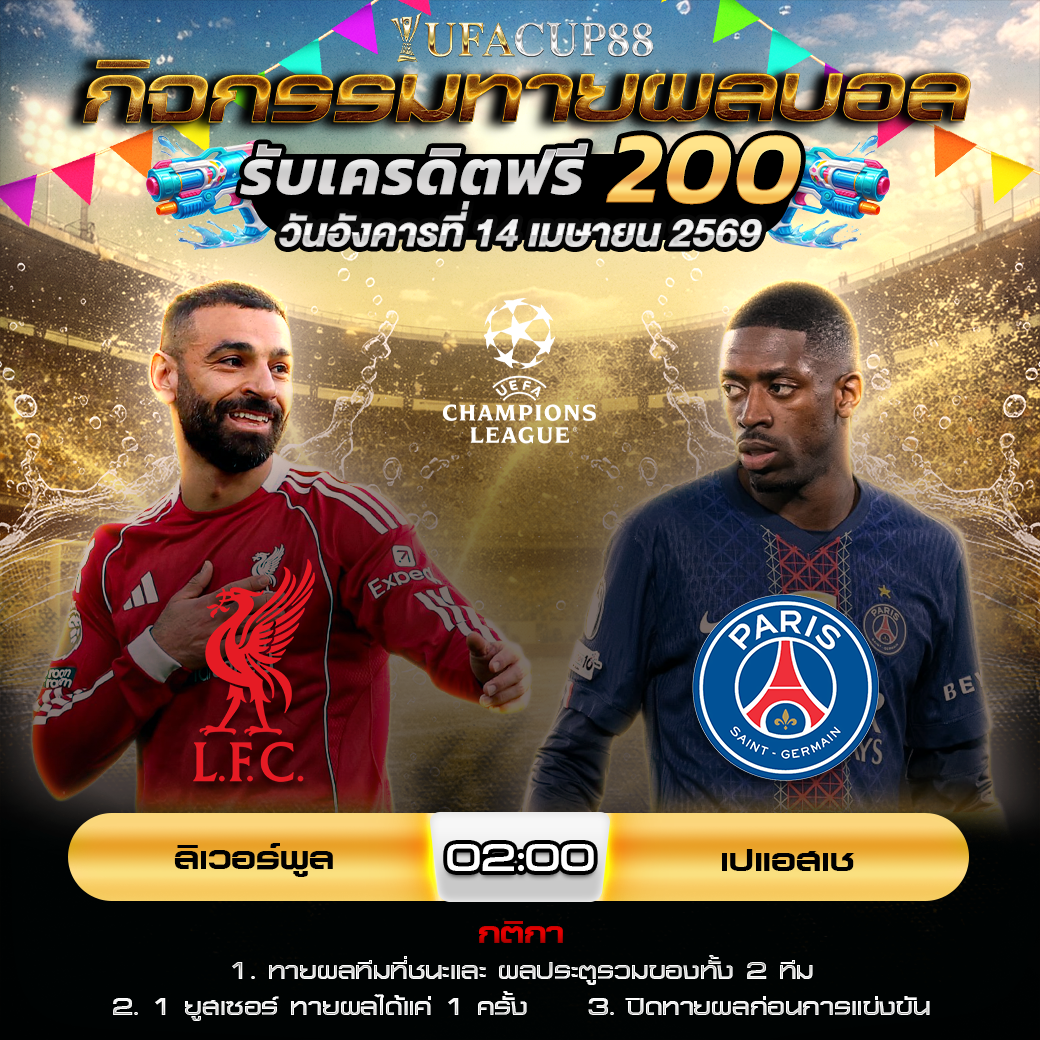 กิจกรรมทายสกอร์รวมและทีมไหนจะชนะคู่ ลิเวอร์พูล VS เปแอสเช ประจำวันที่ 14 เมษายน 2569