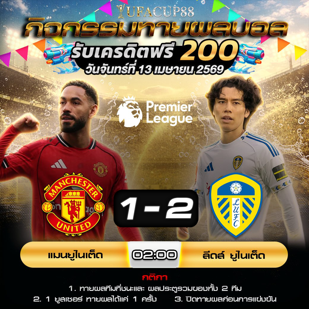 ประกาศกิจกรรมทายสกอร์รวมและทีมไหนจะชนะคู่ แมนฯ ยูไนเต็ด 1-2 ลีดส์ ยูไนเต็ด ประจำวันที่ 13 เมษายน 2569