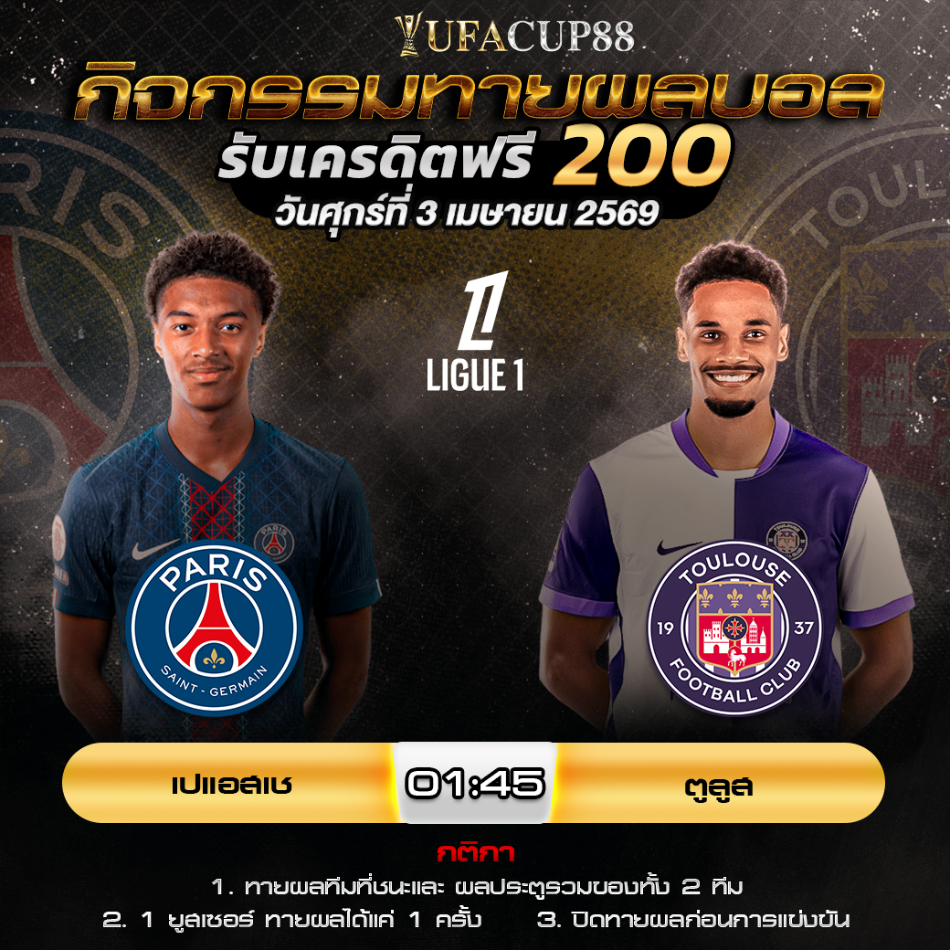 กิจกรรมทายสกอร์รวมและทีมไหนจะชนะคู่ เปแอสเช VS ตูลูส ประจำวันที่ 3 เมษายน 2569