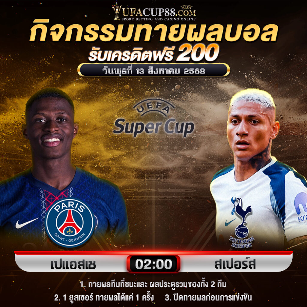 *** ไม่จำกัดจำนวนคนถูก ย้ำทายสกอร์รวมและทีมที่ชนะ ***