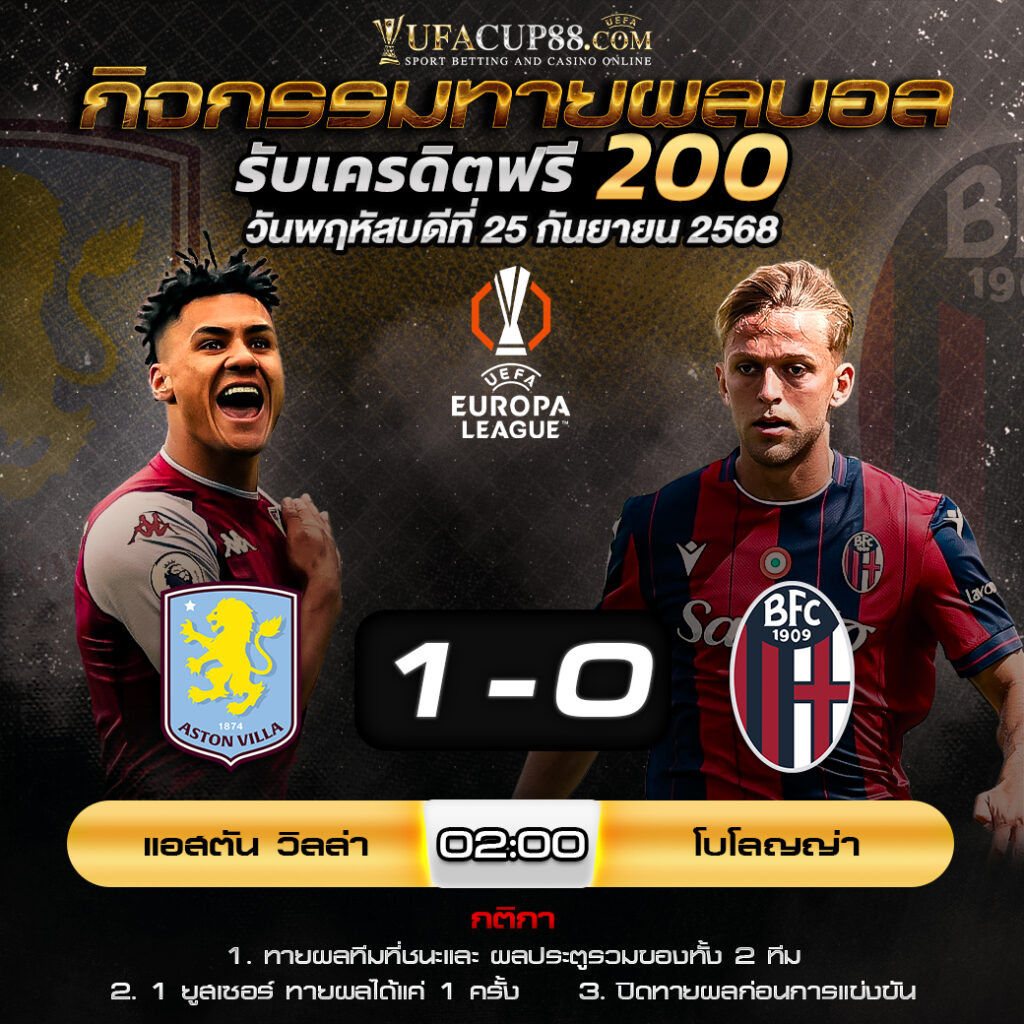 ผลการแข่งขัน แอสตัน วิลล่า ชนะ