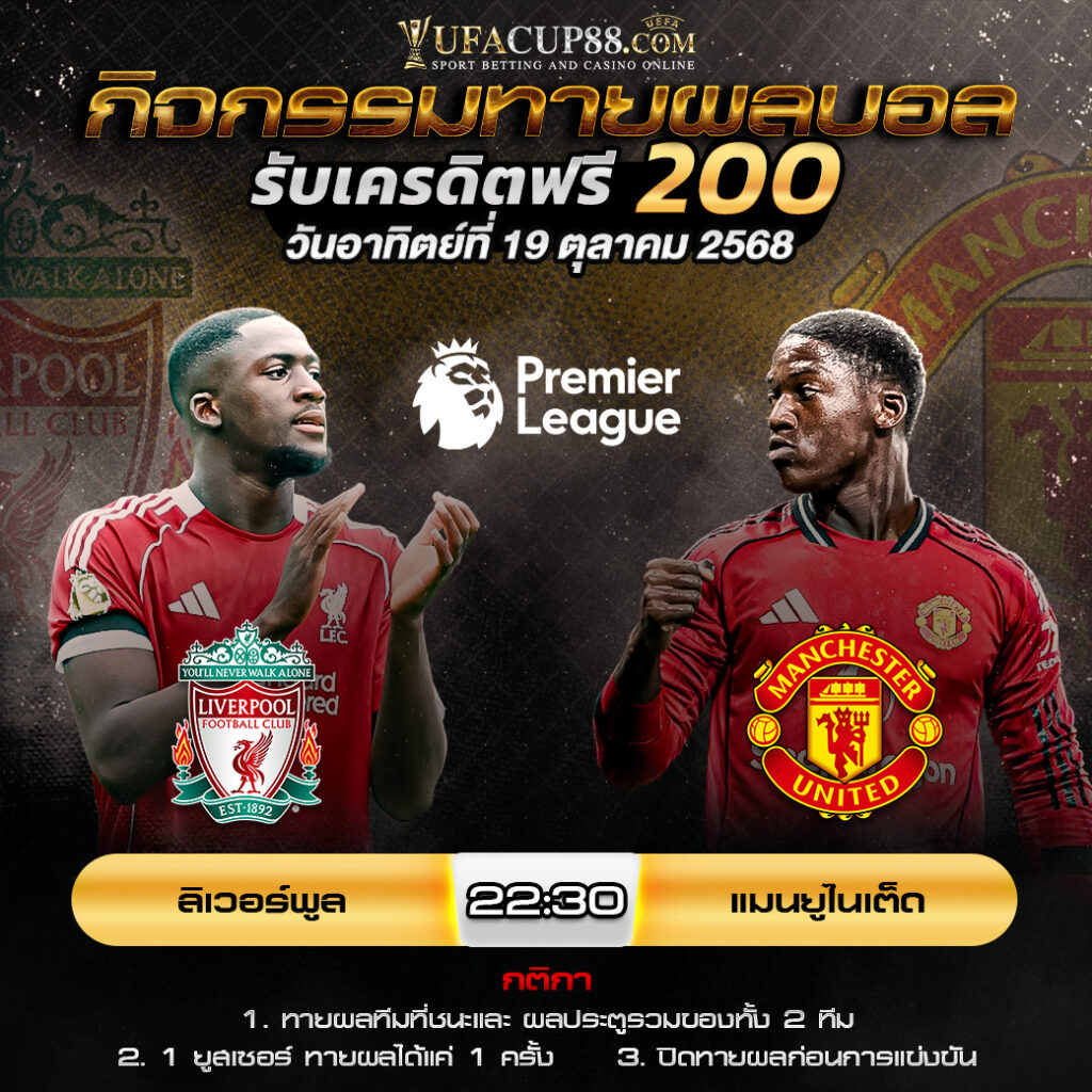 กิจกรรมทายสกอร์รวมและทีมไหนจะชนะคู่ ลิเวอร์พูล VS แมนยูไนเต็ด ประจำวันที่ 19 ตุลาคม 2568