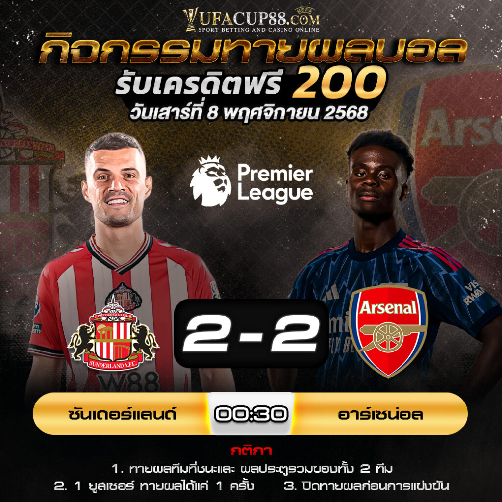 ประกาศผู้ชนะกิจกรรมประกาศกิจกรรมทายสกอร์รวมและทีมไหนจะชนะคู่ ซันเดอร์แลนด์ 2-2 อาร์เซน่อล ประจำวันที่ 8 พฤศจิกายน 2568 ประกาศรายชื่อผู้โชคดี ผลการแข่งขัน เสมอ สกอร์ประตูรวม ทั้งหมด 4 ทำประตู รายชื่อสมาชิกที่ได้รับรางวัล 200.-ไม่มีสมาชิกทายถูก ติดต่อรับรางวัลได้ที่ @VIP.C88 กิจกรรมทายสกอร์รวมและทีมไหนจะชนะคู่ ซันเดอร์แลนด์ VS อาร์เซน่อล ประจำวันที่ 8 พฤศจิกายน 2568 กิจกรรมทายสกอร์รวมและทีมไหนจะชนะคู่ แมนฯ ซิตี้ VS ลิเวอร์พูล ประจำวันที่ 9 พฤศจิกายน 2568