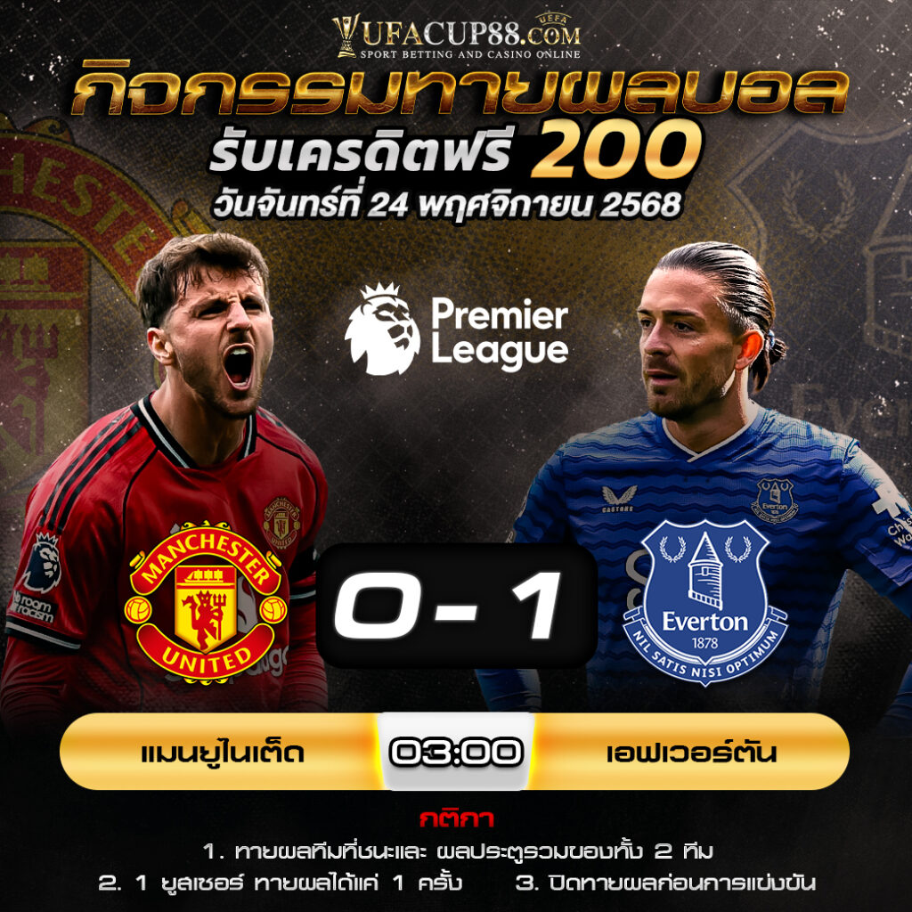 ประกาศกิจกรรมทายสกอร์รวมและทีมไหนจะชนะคู่ แมนยูไนเต็ด 0-1 เอฟเวอร์ตัน ประจำวันที่ 24 พฤศจิกายน 2568