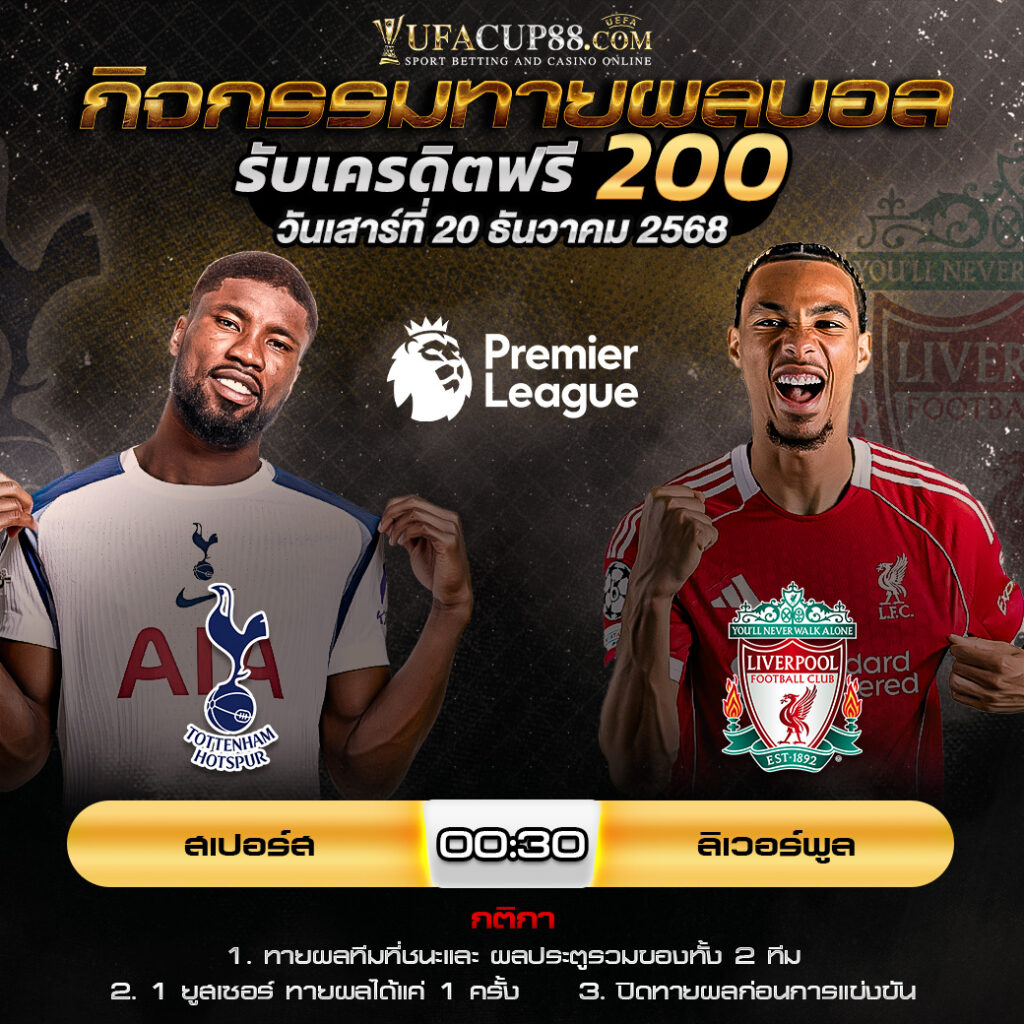 *** ไม่จำกัดจำนวนคนถูก ย้ำทายสกอร์รวมและทีมที่ชนะ ***