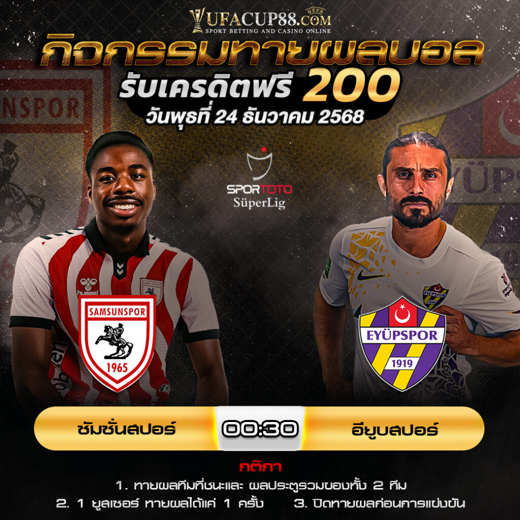 กิจกรรมทายสกอร์รวมและทีมไหนจะชนะคู่ ซัมซั่นสปอร์ VS อียูบสปอร์ ประจำวันที่ 24 ธันวาคม 2568