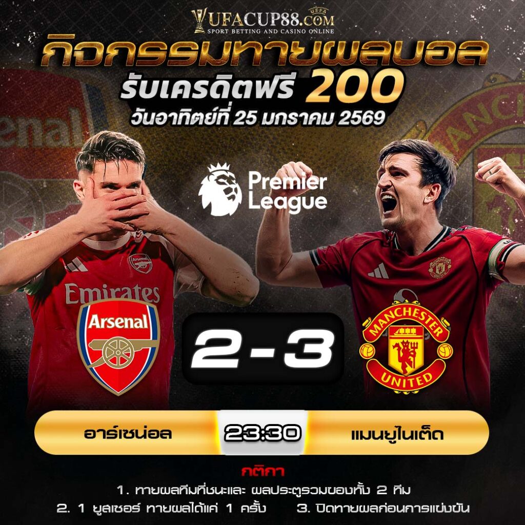 ประกาศกิจกรรมทายสกอร์รวมและทีมไหนจะชนะคู่ อาร์เซน่อล 2-3 แมนฯ ยูไนเต็ด ประจำวันที่ 25 มกราคม 2569