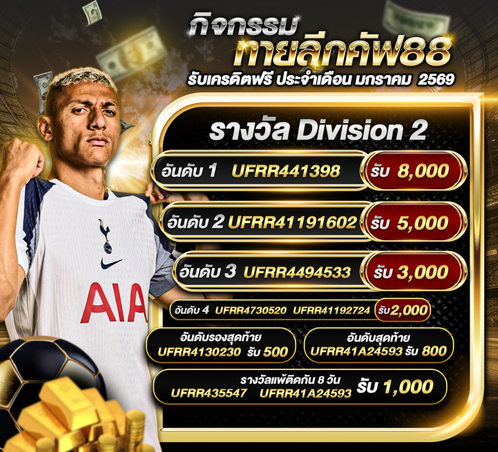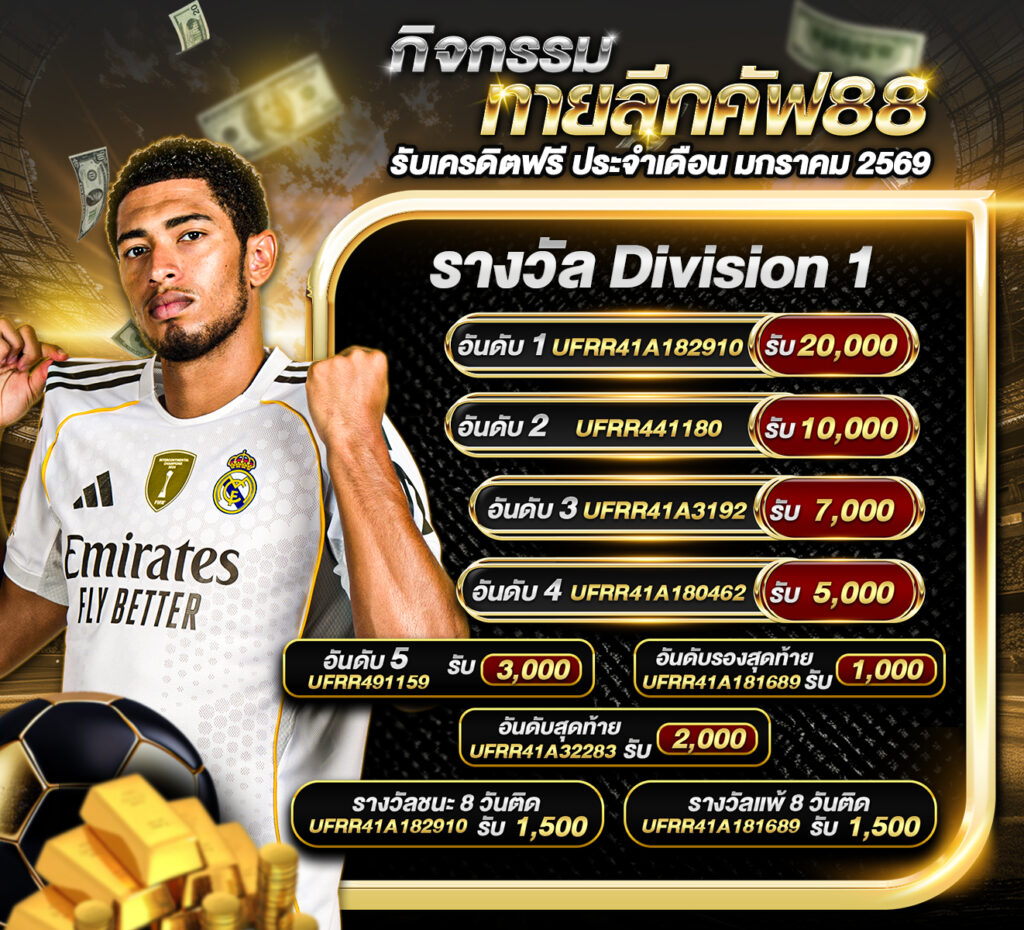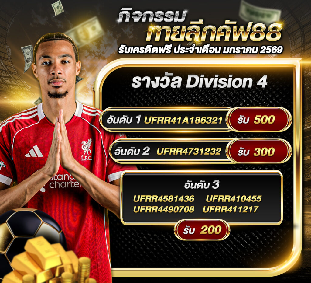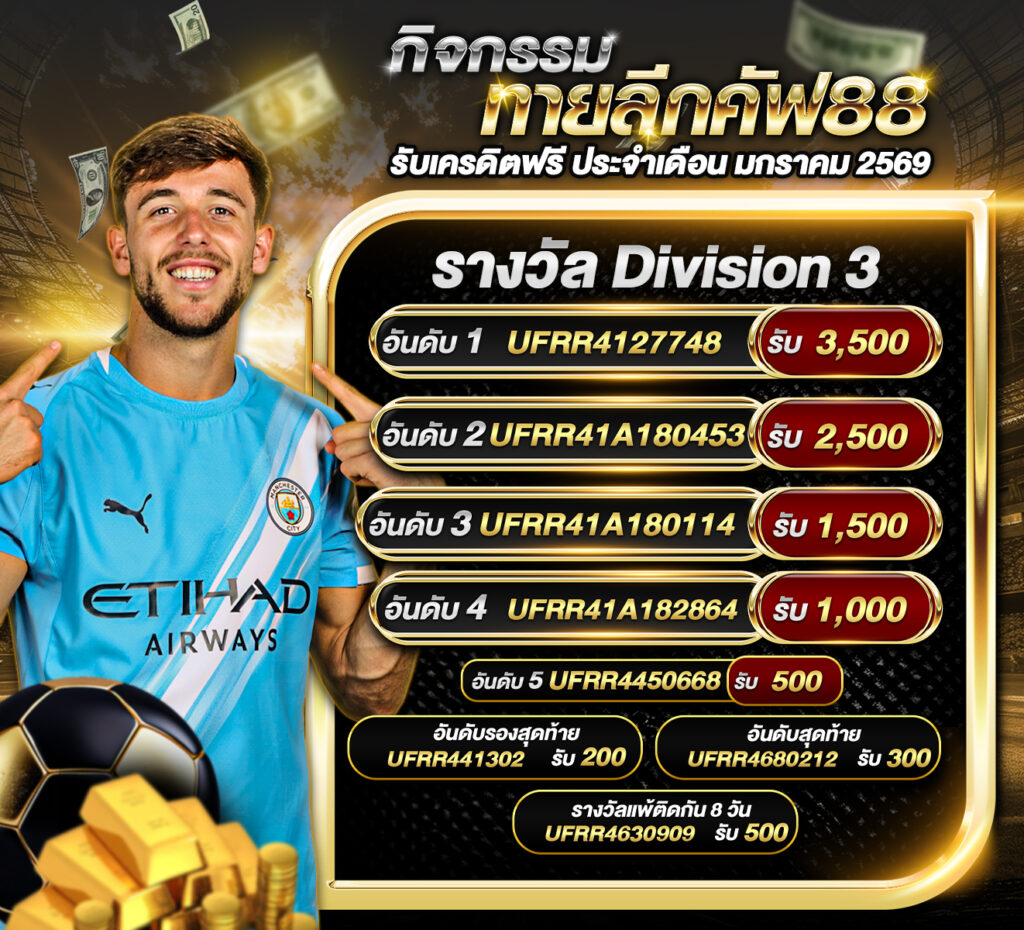 ประกาศผู้ชนะกิจกรรมประกาศกิจกรรม ทายลีกคัฟ88 รับเครดิตฟรี ประจำเดือน มกราคม 2569 กิจกรรมทายสกอร์รวมและทีมไหนจะชนะคู่ ลีลล์ VS ไฟร์บวร์ก ประจำวันที่ 29 มกราคม 2569 ประกาศกิจกรรมทายสกอร์รวมและทีมไหนจะชนะคู่ ลีลล์ 1-0 ไฟร์บวร์ก ประจำวันที่ 29 มกราคม 2569