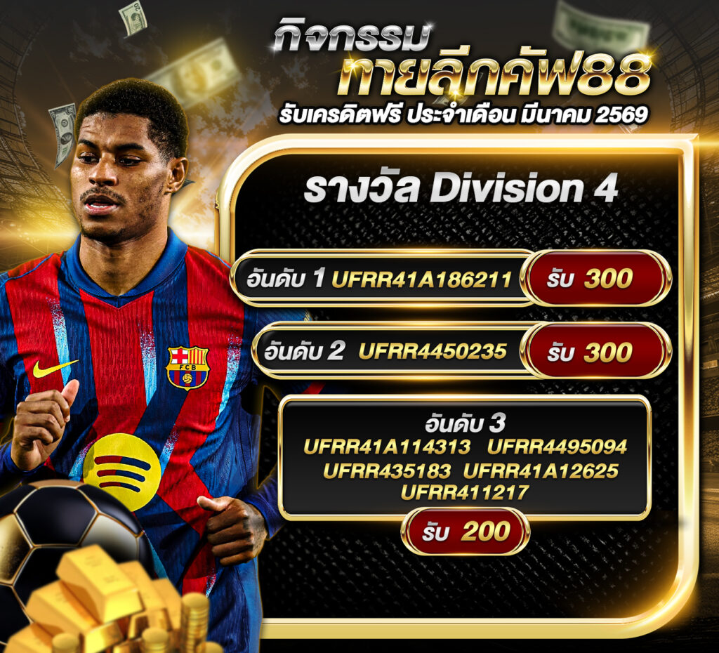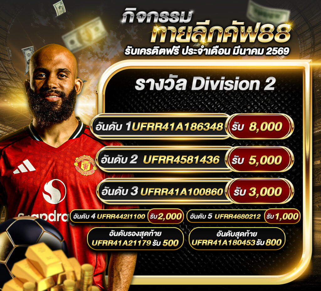 ประกาศผู้ชนะกิจกรรมประกาศกิจกรรม ทายลีกคัฟ88 รับเครดิตฟรี ประจำเดือน มีนาคม 2569 กิจกรรมทายสกอร์รวมและทีมไหนจะชนะคู่ กอร์โดบา VS มิรันเดส ประจำวันที่ 27 มีนาคม 2569