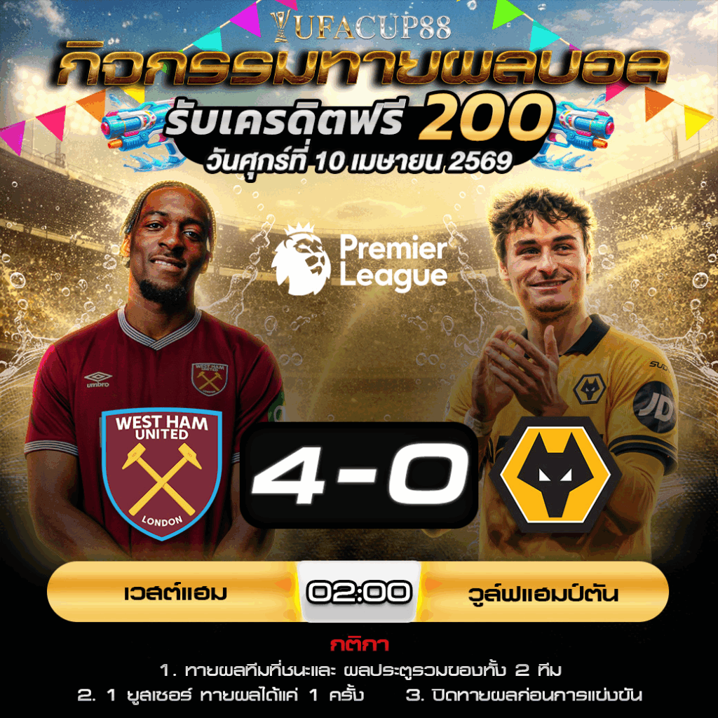 ผลการแข่งขัน เวสต์แฮม ชนะ