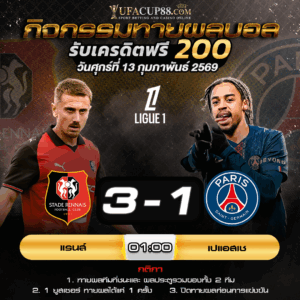 ประกาศรายชื่อผู้โชคดี ผลการแข่งขัน แรนส์ ชนะ สกอร์ประตู [...] [...]