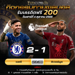 ประกาศรายชื่อผู้โชคดี ผลการแข่งขัน เชลซี ชนะ สกอร์ประตู [...] [...]