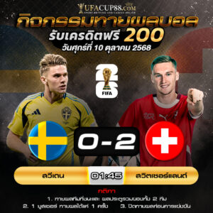 ประกาศรายชื่อผู้โชคดี ผลการแข่งขัน สวิตเซอร์แลนด์ ชนะ ส [...] [...]