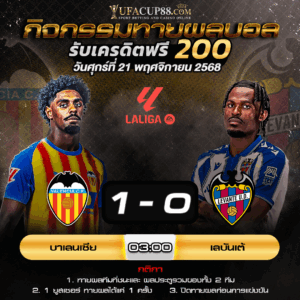 ประกาศรายชื่อผู้โชคดี ผลการแข่งขัน บาเลนเซีย ชนะ สกอร์ป [...] [...]