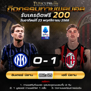ประกาศรายชื่อผู้โชคดี ผลการแข่งขัน เอซี มิลาน ชนะ สกอร์ [...] [...]
