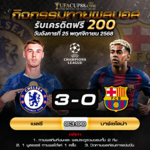 ประกาศรายชื่อผู้โชคดี ผลการแข่งขัน เชลซี ชนะ สกอร์ประตู [...] [...]