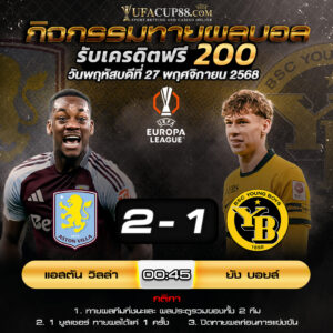 ประกาศรายชื่อผู้โชคดี ผลการแข่งขัน แอสตัน วิลล่า ชนะ สก [...] [...]