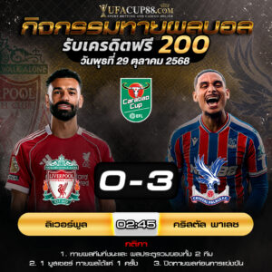 ประกาศรายชื่อผู้โชคดี ผลการแข่งขัน คริสตัล พาเลช ชนะ สก [...] [...]