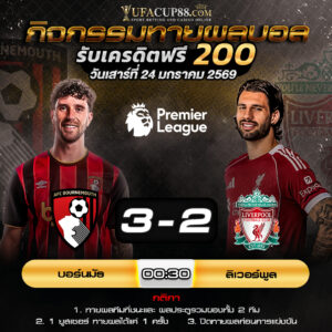 ประกาศรายชื่อผู้โชคดี ผลการแข่งขัน บอร์นมัธ ชนะ สกอร์ปร [...] [...]