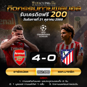 ประกาศรายชื่อผู้โชคดี ผลการแข่งขัน อาร์เซน่อล ชนะ สกอร์ [...] [...]