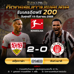 ประกาศรายชื่อผู้โชคดี ผลการแข่งขัน สตุ๊ตการ์ท ชนะ สกอร์ [...] [...]