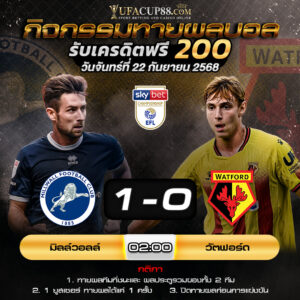ประกาศรายชื่อผู้โชคดี ผลการแข่งขัน มิลล์วอลล์ ชนะ สกอร์ [...] [...]